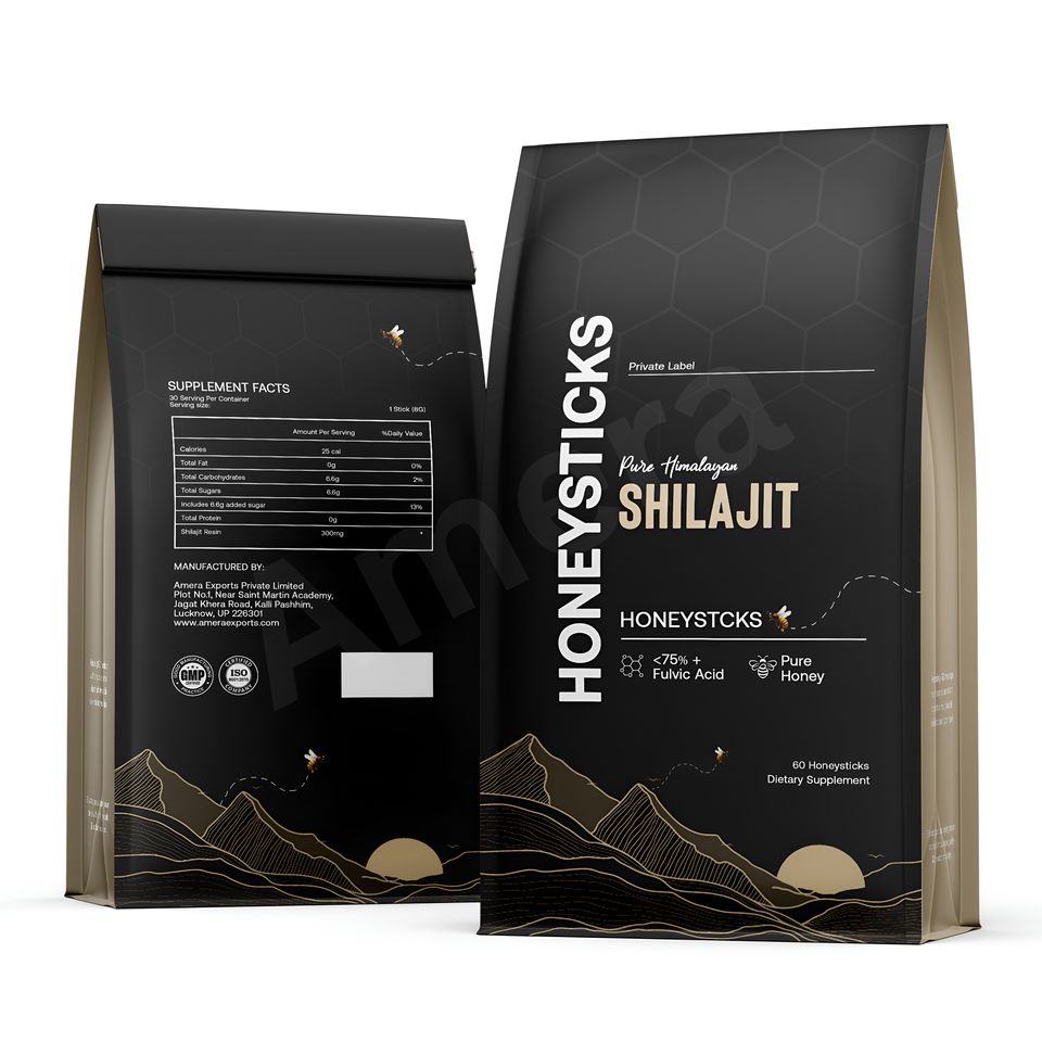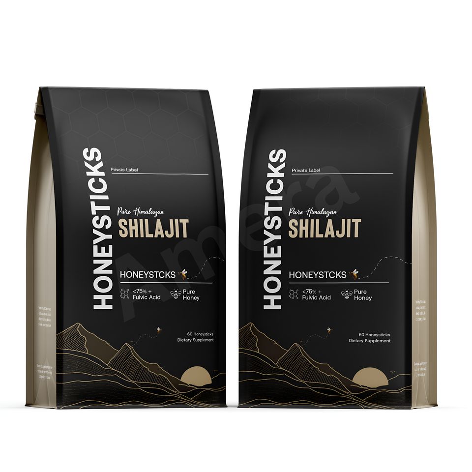 Suplementos de Marca Privada, Etiqueta Personalizada de Miel de Shilajit Dorada para Hombres, Palitos de Miel de Shilajit del Himalaya Orgánicos, Extracto de Plantas