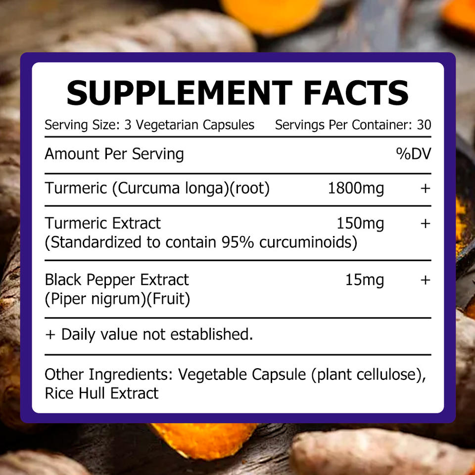Ingrediente principal:Raíz de cúrcuma, Extracto de pimienta negra, Extracto de cúrcuma