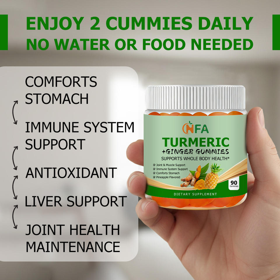 Gomitas de Cúrcuma y Jengibre de Marca Privada con Extracto de Jengibre, Suplemento que Refuerza el Sistema Inmunológico y Alivia el Estómago