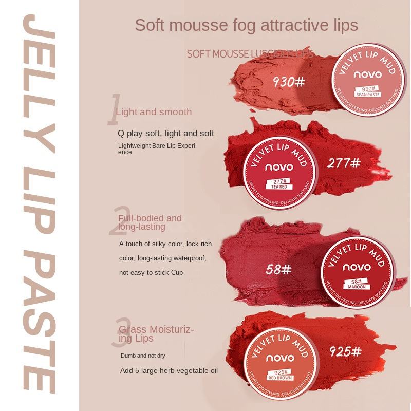 Etiqueta privada Velvet Matte Jelly Lip Mud Cream Impermeable Hidratante Lápiz labial suave Maquillaje