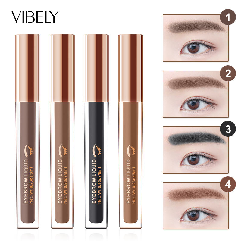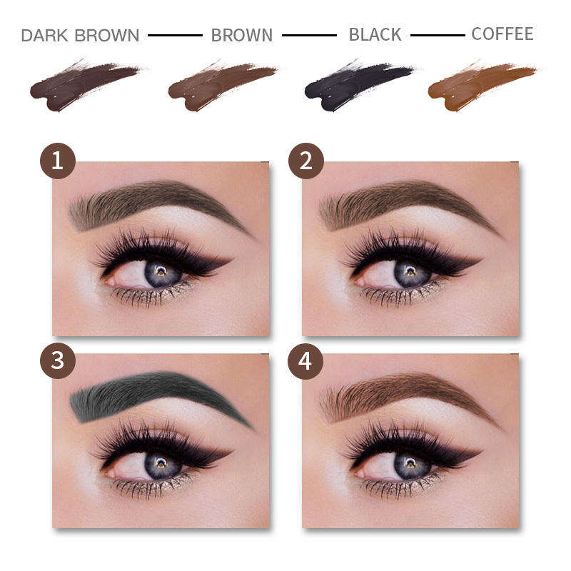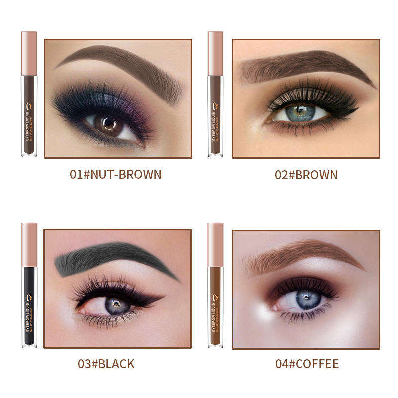 Delineador de Cejas Líquido a Prueba de Agua y Manchas, 4 Colores, Larga Duración, Tinte 3D para Cejas con Cepillo y Peine de Doble Punta, Marca Privada