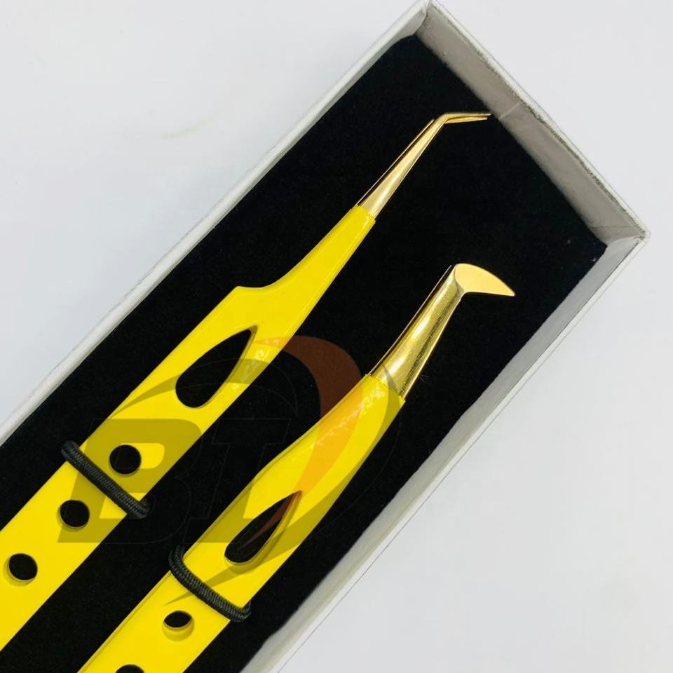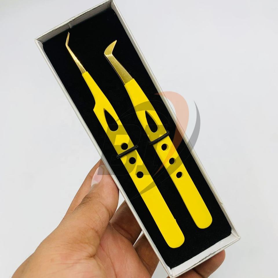 Pinzas Profesionales de Acero Inoxidable con Mango Dentado Dorado para Extensión de Pestañas, Marca Privada
