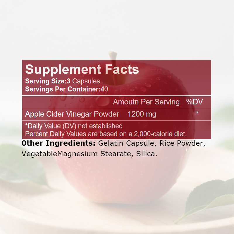 Ingrediente principal:Vinagre de sidra de manzana en polvo 1200mg