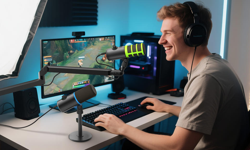 Micrófono Dinámico de Alta Calidad Prizmora DM68, XLR/USB Tipo-C, Patrón Polar Cardioide, 48/96kHz, Cancelación de Ruido, Micrófono para Juegos