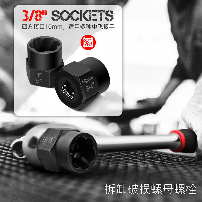 Juego de llaves de vaso con rosca inversa Pro de 3/8 pulgadas, 15 piezas, acero al cromo molibdeno de grado industrial para reparación de automóviles