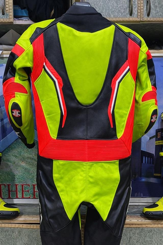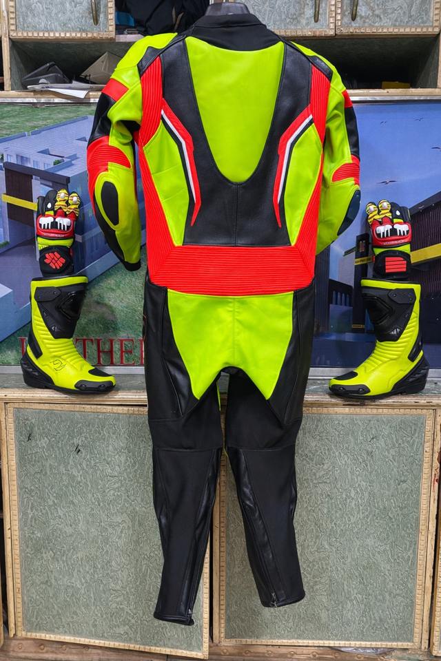 Traje de Motociclista de Cuero Genuino de Primera Calidad, Color Negro Neón y Amarillo, Nuevo, Resistente al Viento