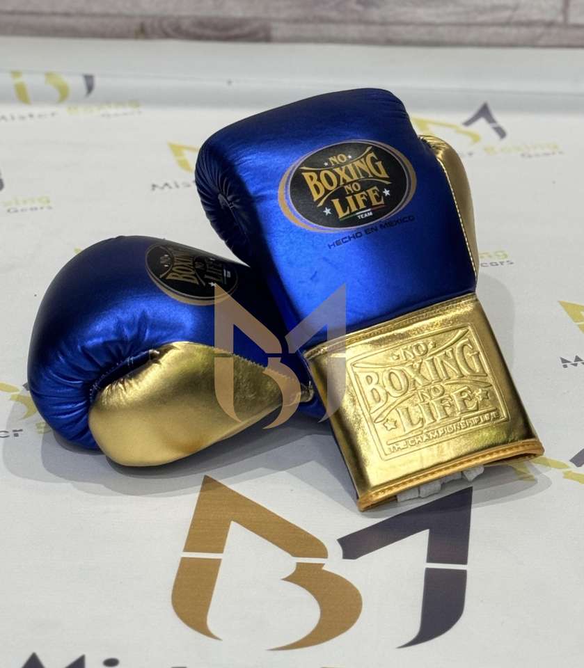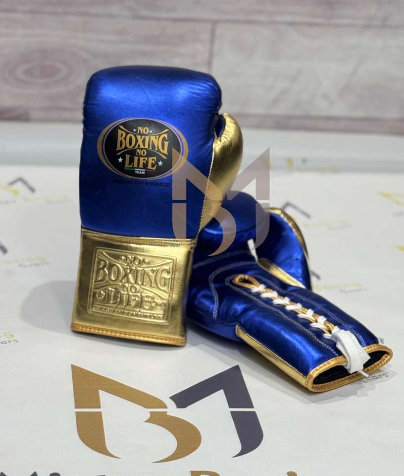 Guantes de Boxeo Profesionales Edición Azul Dorado, Sin Boxeo No Hay Vida, Equipo de Entrenamiento y Combate, Guantes de Boxeo Personalizados con Cordones