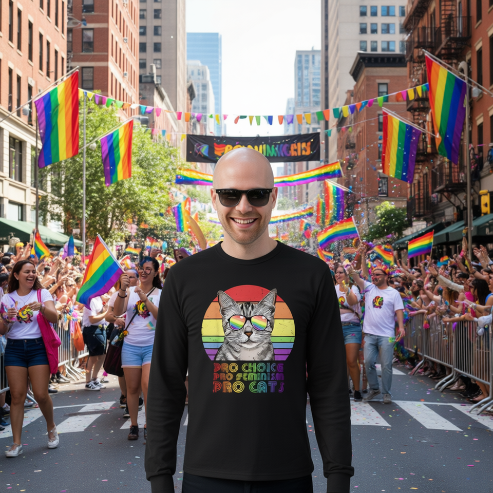 Camiseta de manga larga Pro Choice Pro Feminism Pro Cats con diseño de gato arcoíris, ropa de orgullo LGBTQ