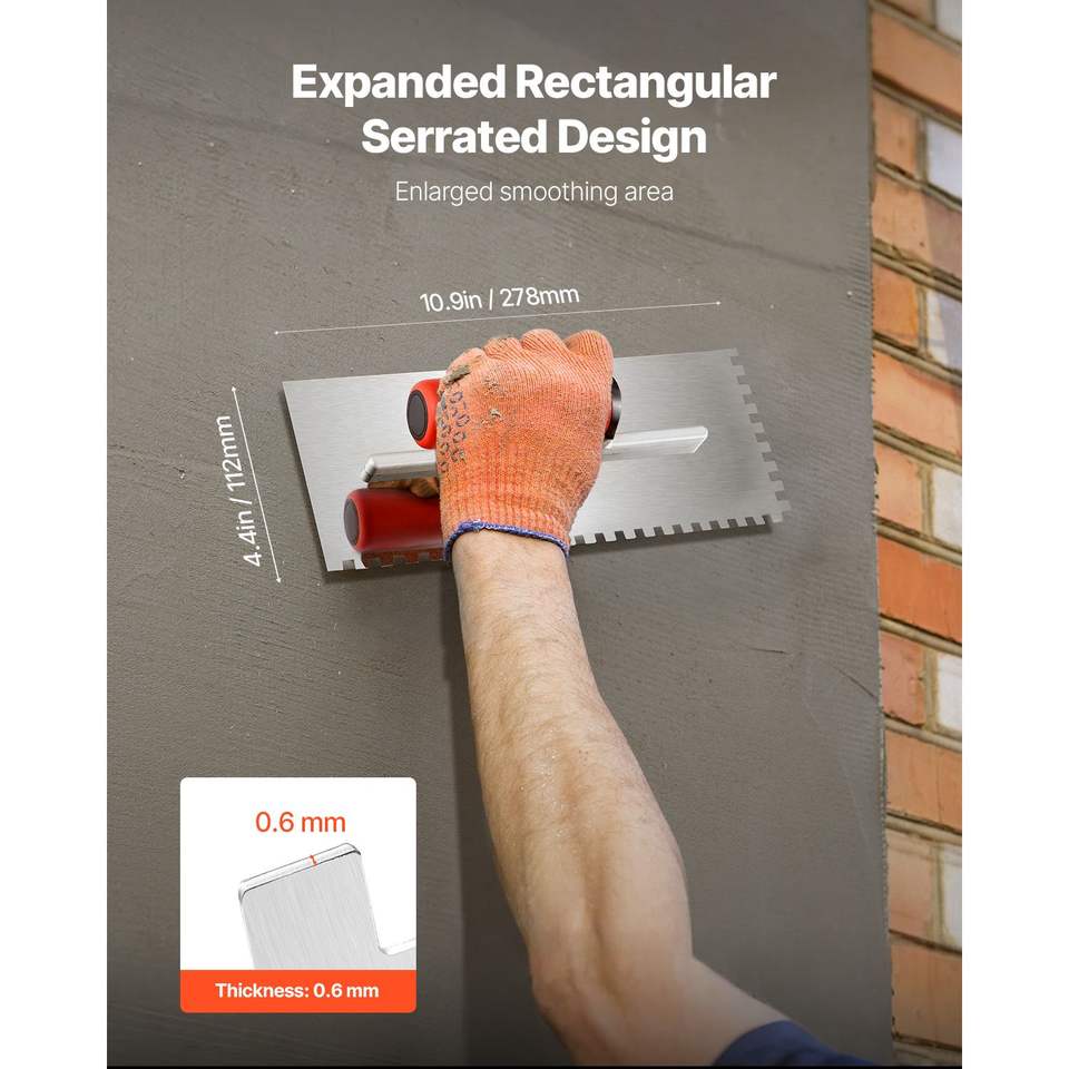 Herramienta Ergonómica Profesional para Azulejos, Espátula para Pisos con Muescas Cuadradas de Acero Inoxidable, 10.9 x 4.4, Herramienta para Paneles de Yeso con Agarre de Goma Cómodo