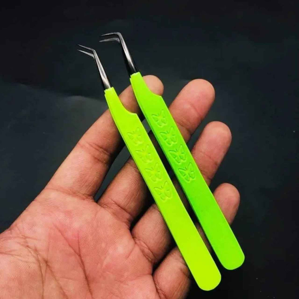Juego de Pinzas Profesionales para Extensiones de Pestañas, Acero Inoxidable, Antimagnéticas, Mango Cómodo, 10 mm, Aislamiento de Volumen