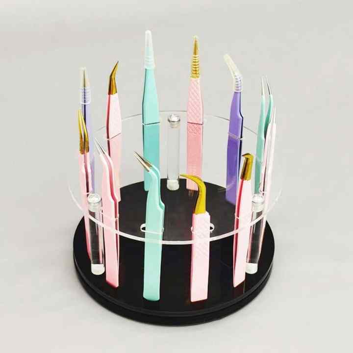 Soporte de pinzas acrílicas modernas de nivel profesional con función giratoria esencial para extensiones de pestañas, mantiene los espacios de trabajo ordenados