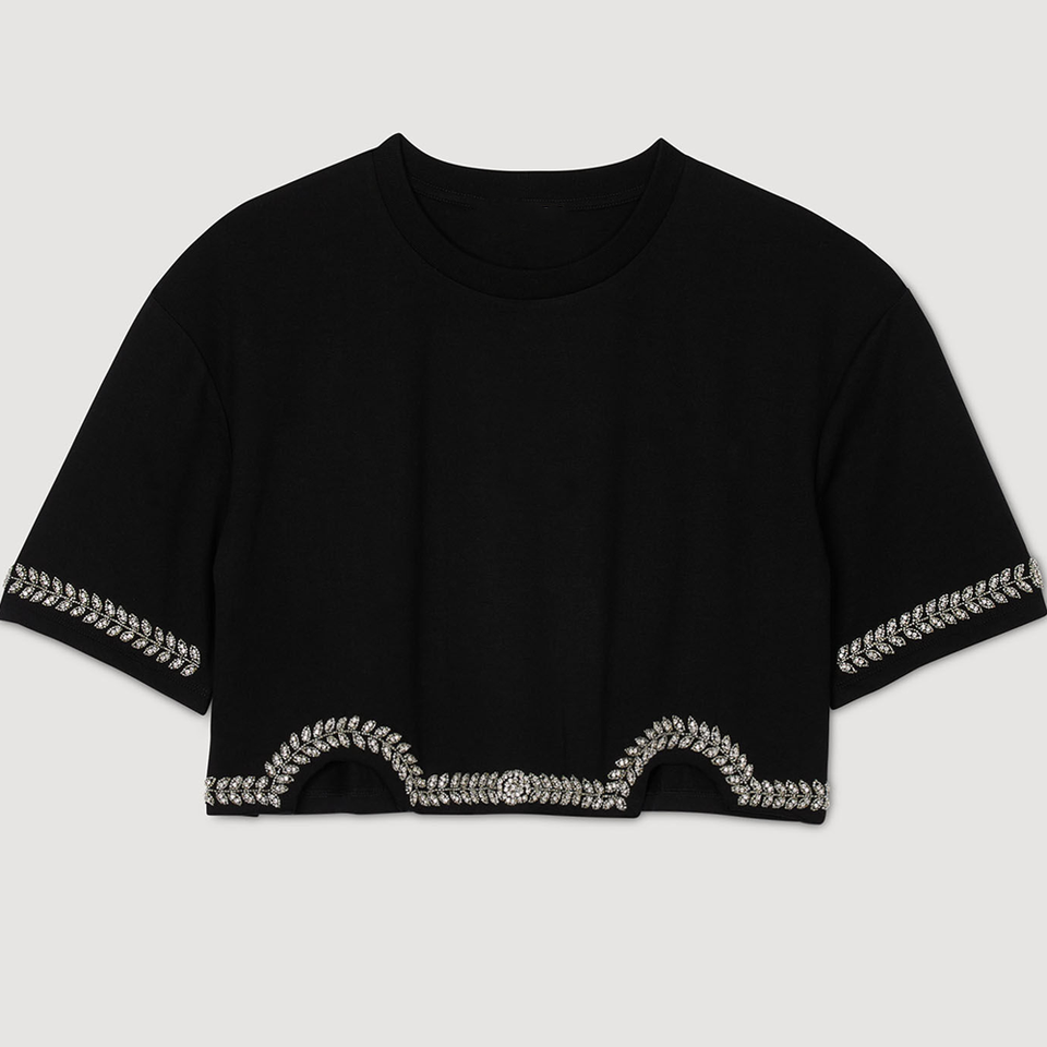 Camiseta de diamantes de imitación para mujer de calidad profesional, Camiseta cómoda con diamantes de imitación de tu propio diseño