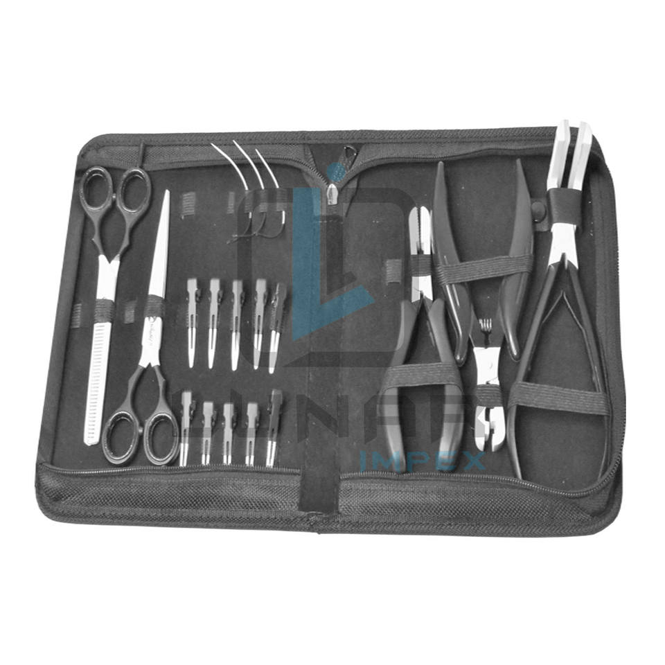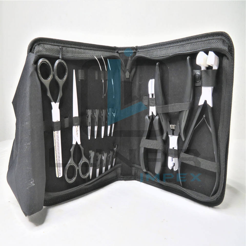 Kit de herramientas de extensión de cabello Pro Tape, herramientas hechas a mano de la mejor calidad para trama, cinta de cabello humano en extensión de cabello en blanco y negro