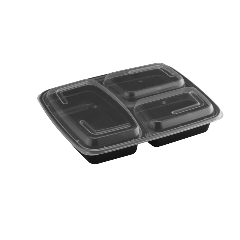 ProTakeOut - Juego de 150 Recipientes Rectangulares para Alimentos de 39 oz con 3 Compartimentos, Aptos para Microondas, Libres de BPA, Dimensiones de la Tapa: 9.7x7.67x0.63