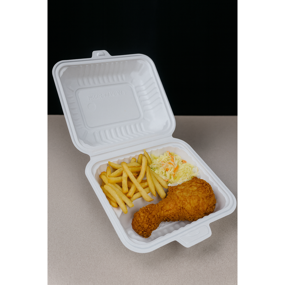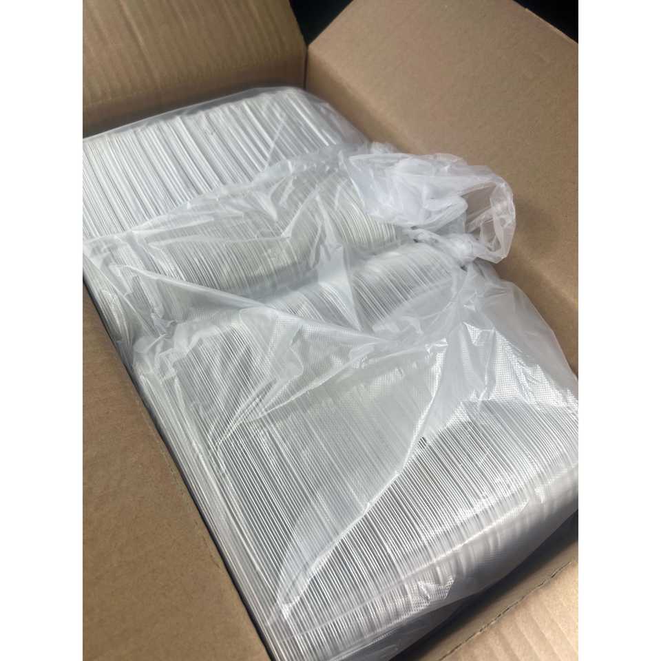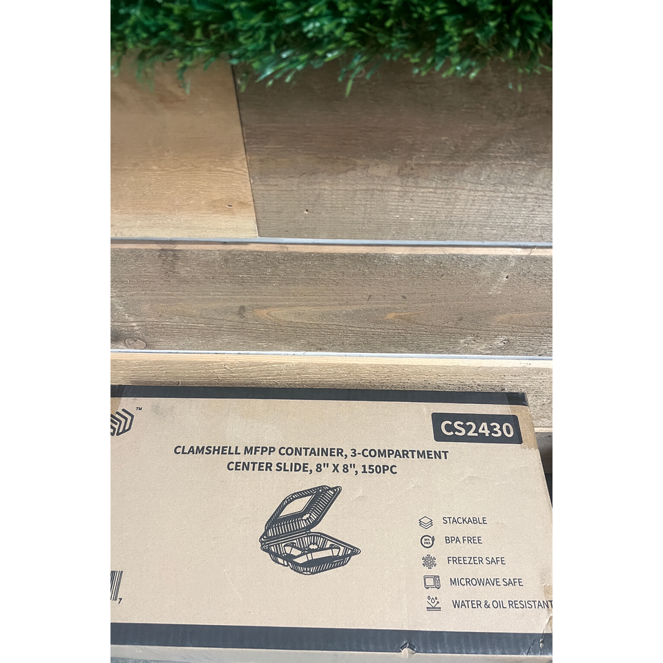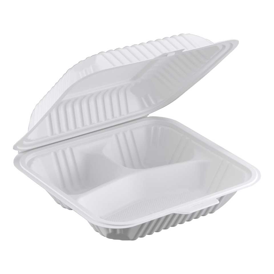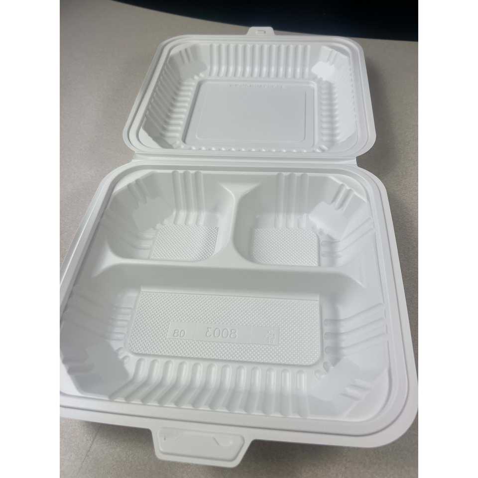 ProTakeOut [8 X 8 X 2.75 Pulgadas] Contenedores Blancos de 3 Compartimentos con Cierre Deslizante Central, Paquete de 150, Duraderos y Ecológicos, MFPP