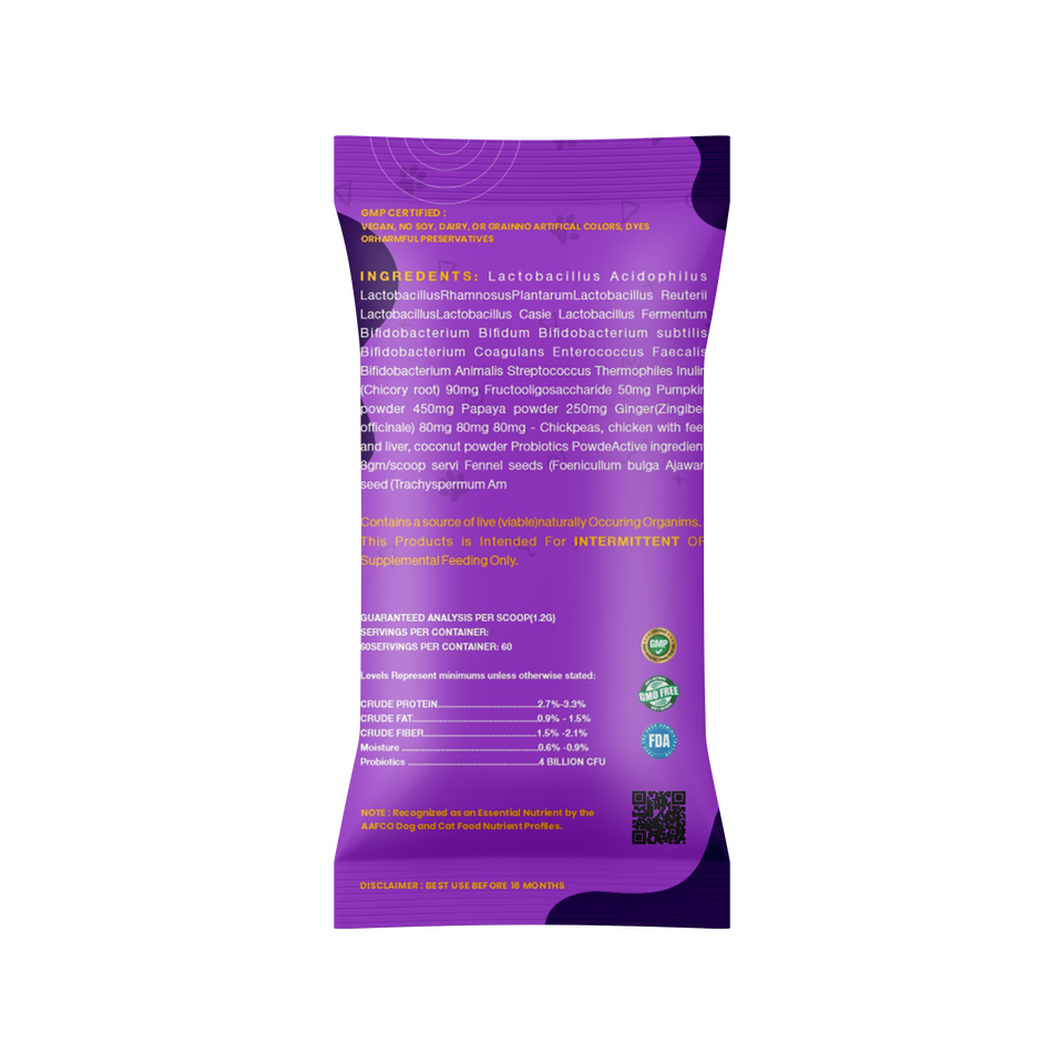 Polvo Probiótico para Perros y Gatos. Alivia la Diarrea, las Molestias Estomacales, los Gases, el Estreñimiento, el Mal Aliento, la Picazón, las Infecciones por Hongos y Mejora la Digestión