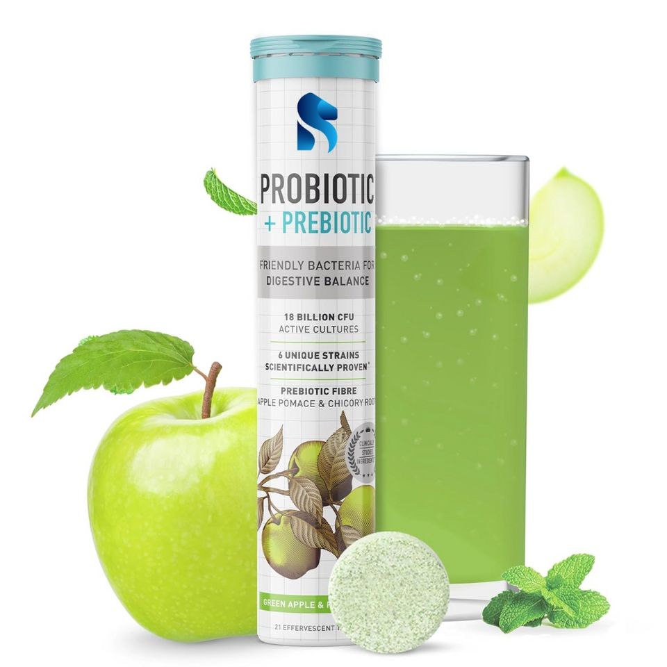 Prebiótico de Equilibrio Digestivo de 18 mil millones de CFU, manzana verde, sabor a menta, 6 cepas únicas, 21 tabletas, paquete seguro para adultos