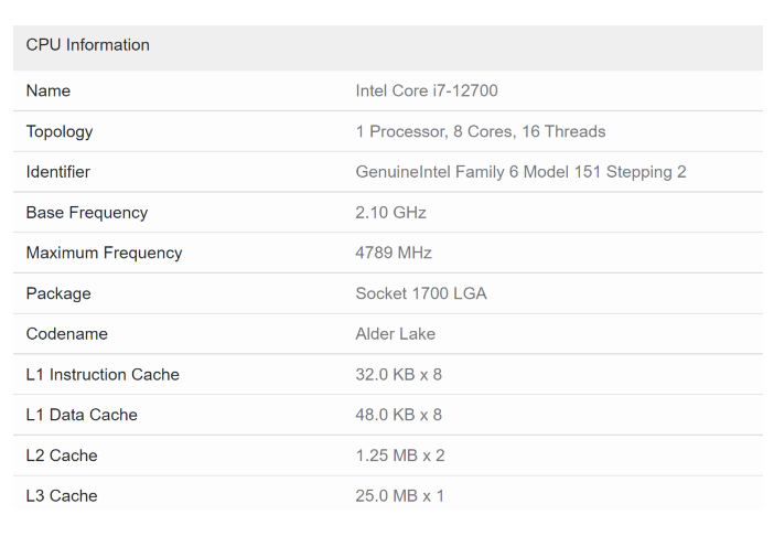 Modelo de procesador CPU:Procesador Intel Core i7 12700