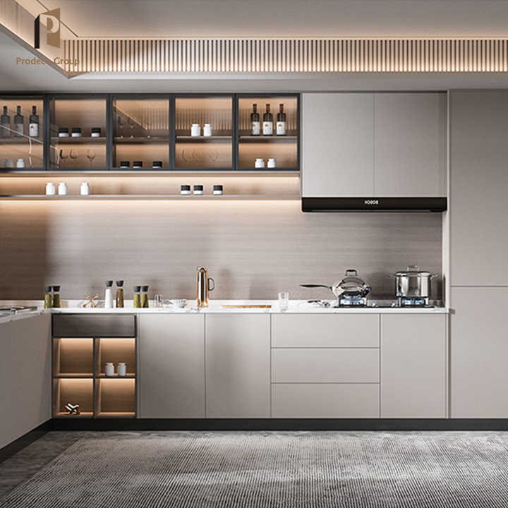 Prodeco venta caliente 2025: muebles de almacenamiento modernos personalizados, armario de cocina lacado a alto brillo con electrodomésticos para el hogar