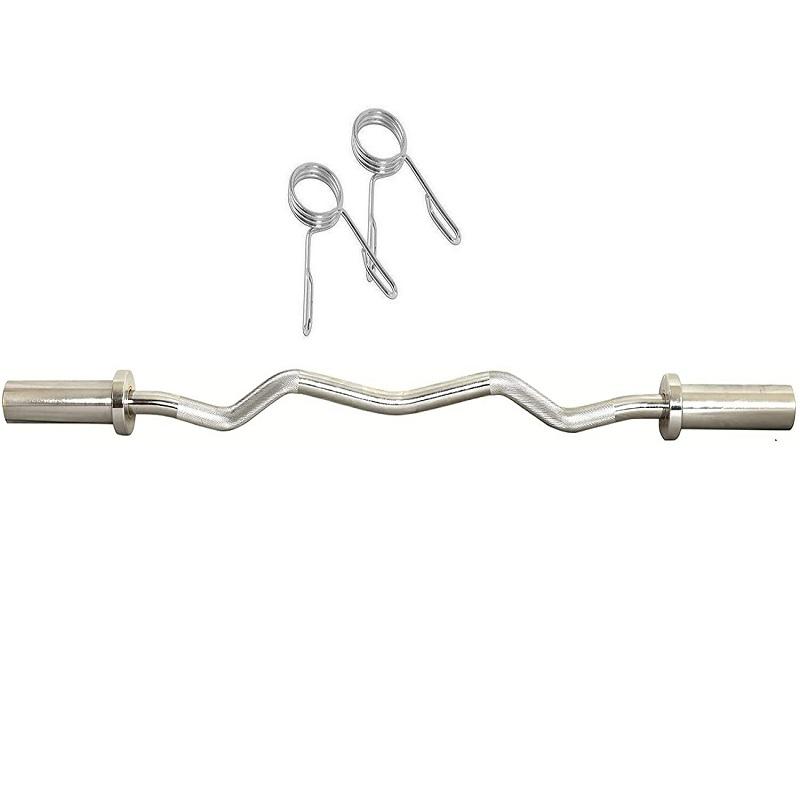 Barra de Pesas Profesional EZ Curl de 1.5m, Cromada, Plateada, de Alta Resistencia, 10kg/20kg, para Uso Comercial, Ergonómica, para Levantamiento de Pesas