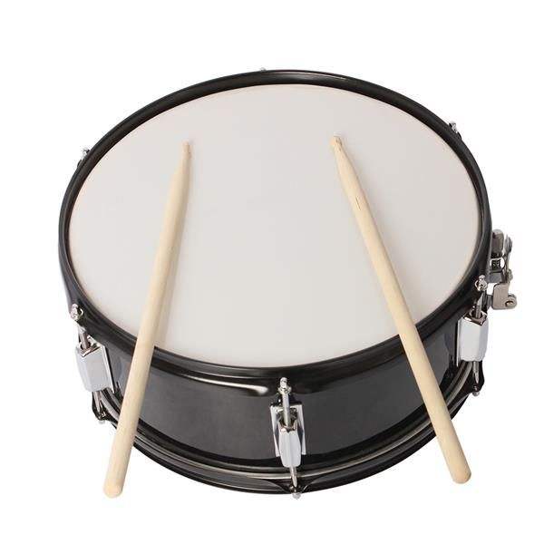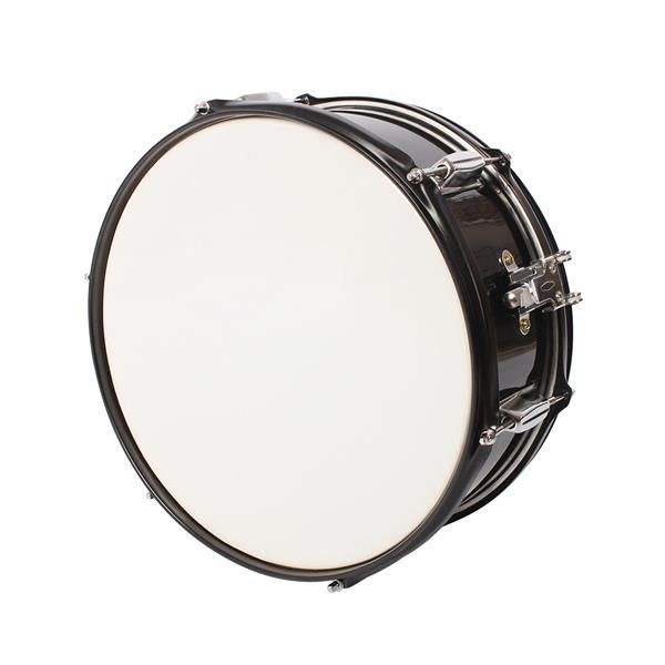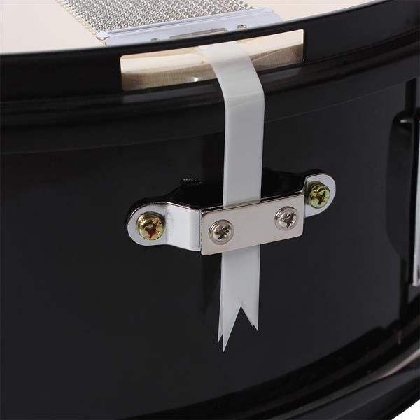 Kit de Tambor de Marcha Profesional Negro de 14 x 5.5 Pulgadas con Baqueta, Correa, Llave y Accesorios Esenciales