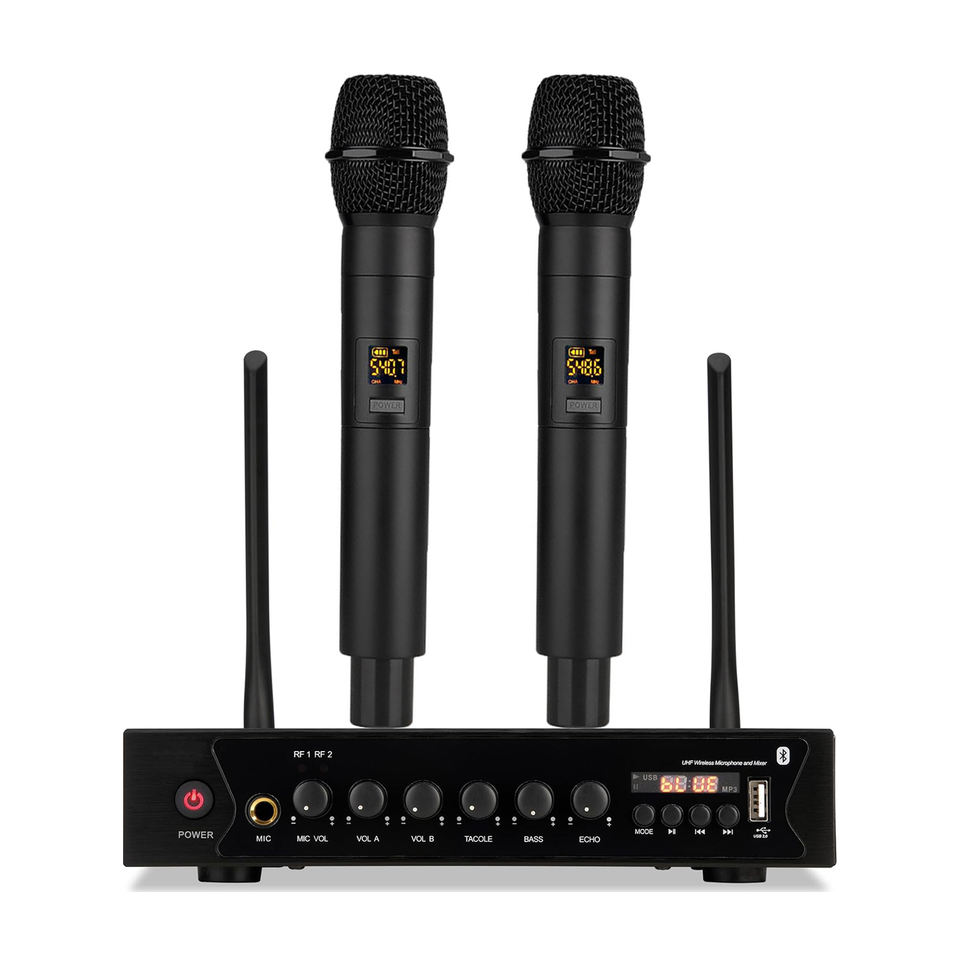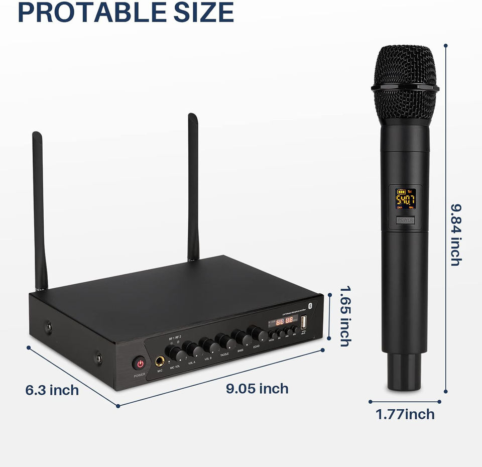 Sistema de Micrófono Dinámico Profesional 2 en 1, Micrófono Inalámbrico de Metal de Mano, el Mejor Micrófono para una Calidad de Audio Superior