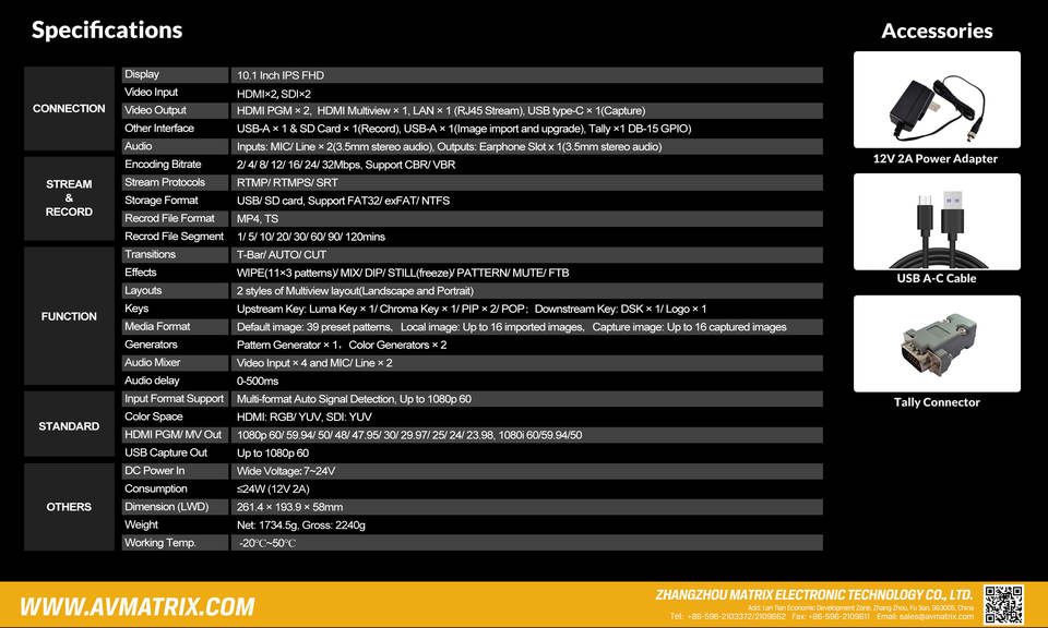 Video Out:HDMI PGM *2; HDMI Multiview *1;USB type-C *1;LAN *1