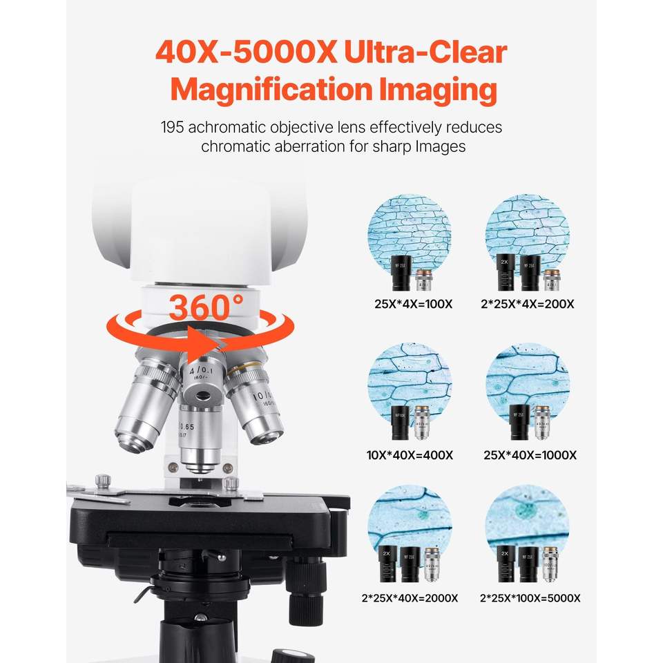 Microscopio Binocular Profesional con Aumento de 40-5000X para Adultos, Juego de Dos Oculares de Doble Etapa, Categoría de Productos de Microscopios
