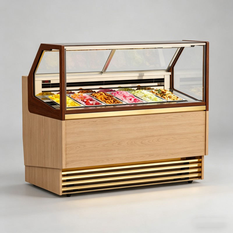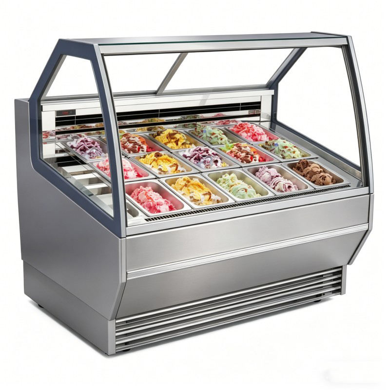 Vitrina Profesional de 49 Pulgadas para Helados con Puerta Abatible, Enfriamiento por Aire, Acero Inoxidable y Descongelación Automática