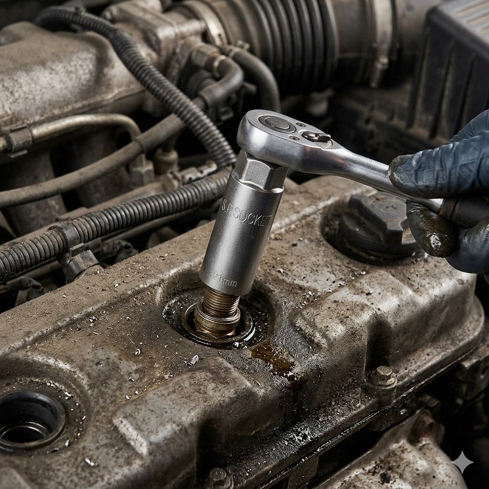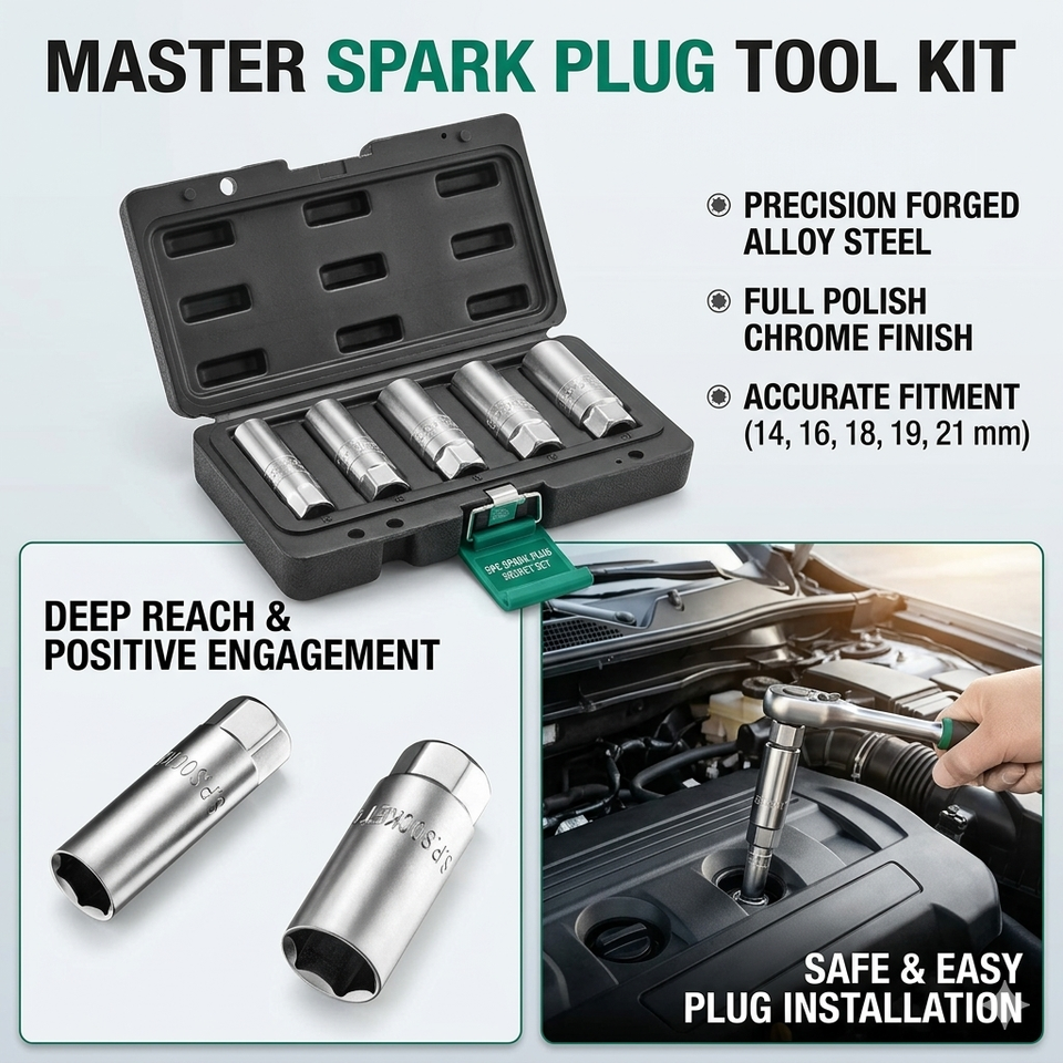 Juego Profesional de 5 Llaves de Vaso para Bujías con Acero CR-V Resistente para Reparación de Motores Automotrices