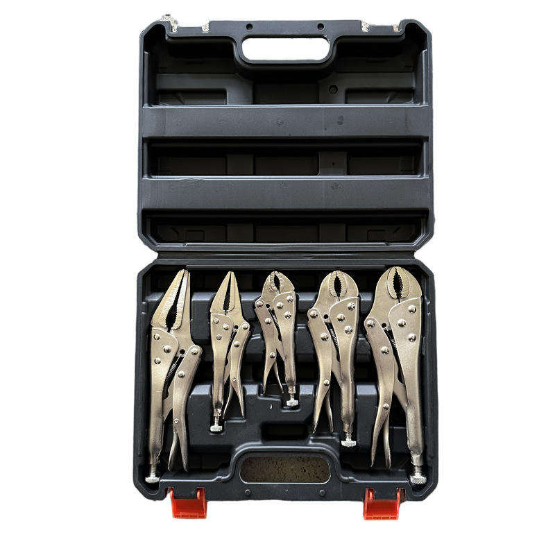 Juego de Alicates de Presión Profesionales de 5 Piezas de 5''-10'', con Mordazas Dentadas, Acero con Alto Contenido de Carbono, OEM, Métrico