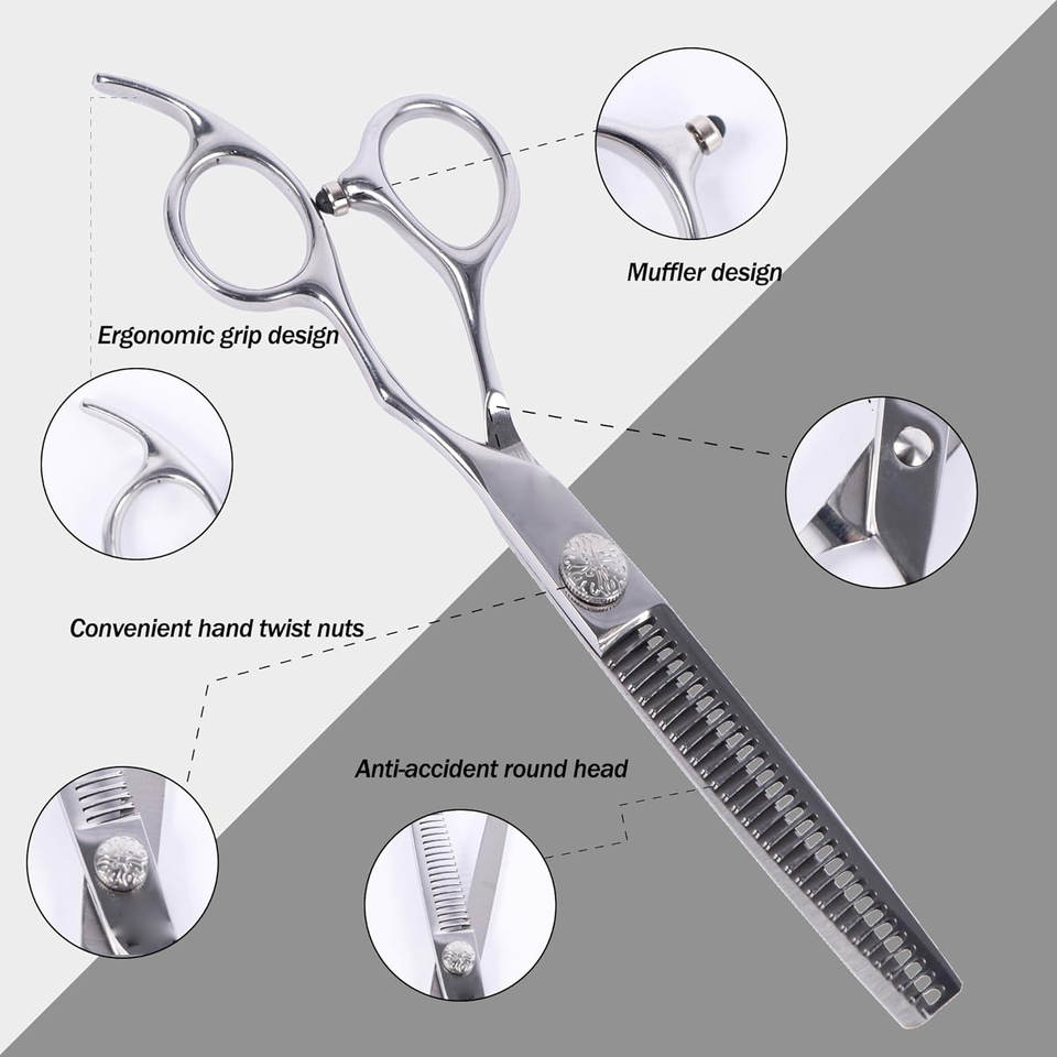 Tijeras de Barbero Profesionales para Zurdos, Personalizables, de 6.5 Pulgadas, con 28 Dientes, Hojas de Acero Inoxidable, Filo Afilado, para Salón de Belleza