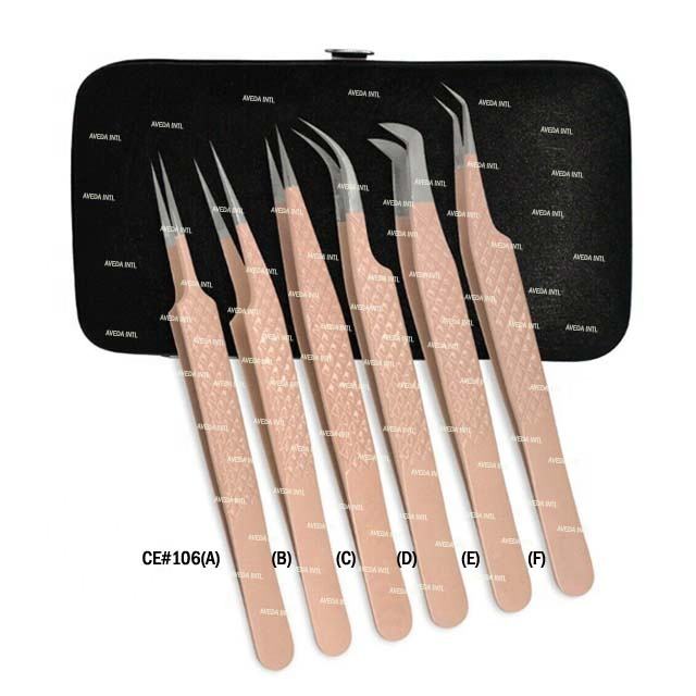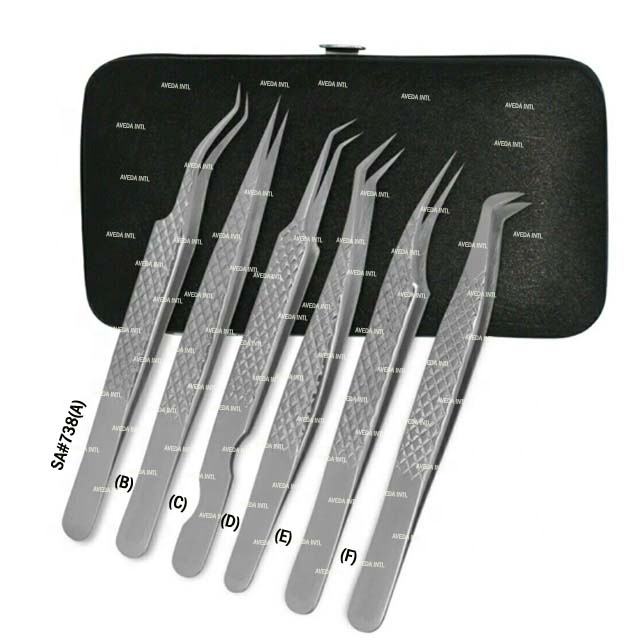 Juego Profesional de 6 Pinzas para Extensión de Pestañas con Estuche Magnético, Acero Inoxidable Plateado, Punta Puntiaguda, Marca Privada, 100% Calidad