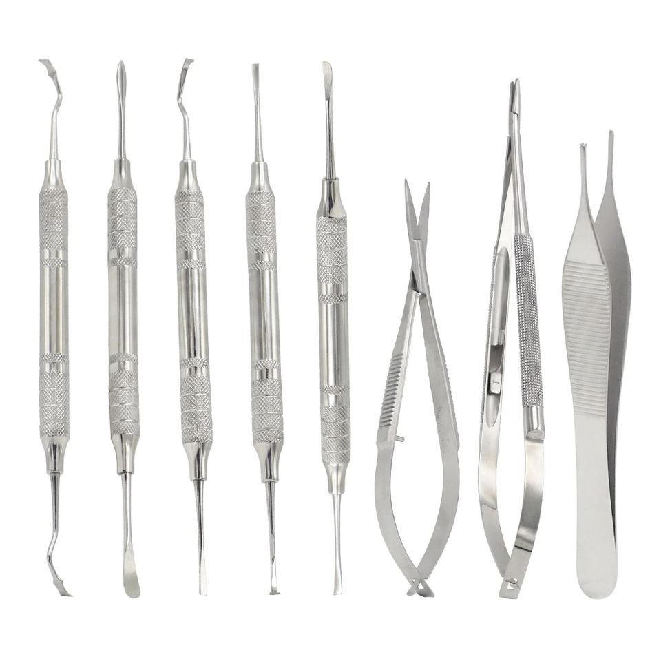 Juego de 7 Instrumentos de Microcirugía Manuales Profesionales de Acero Inoxidable, Kit Quirúrgico Dental de Precisión con Certificación CE