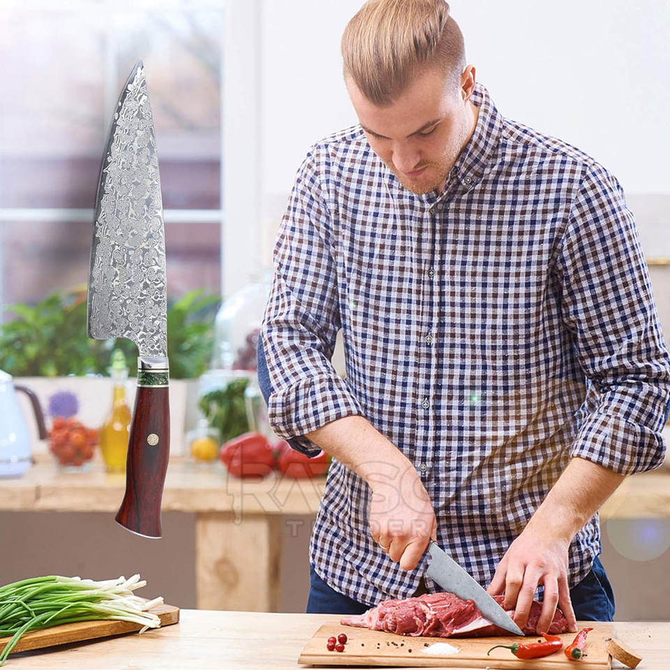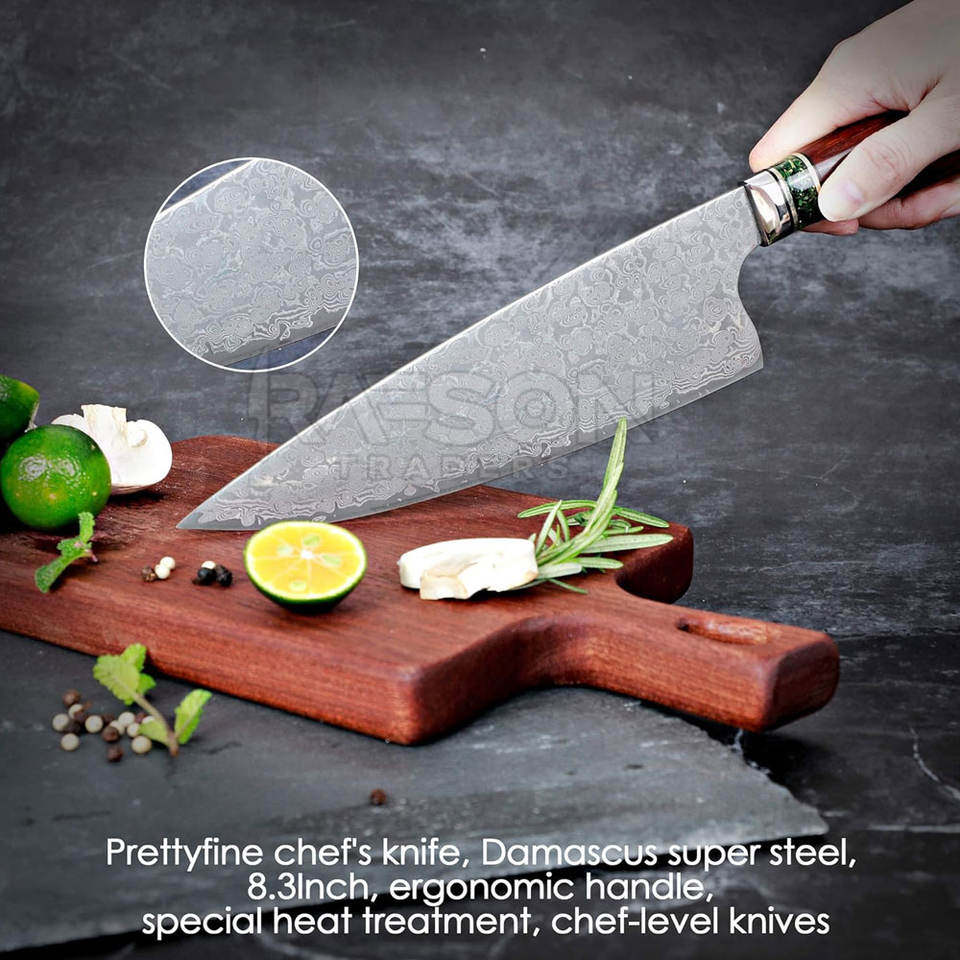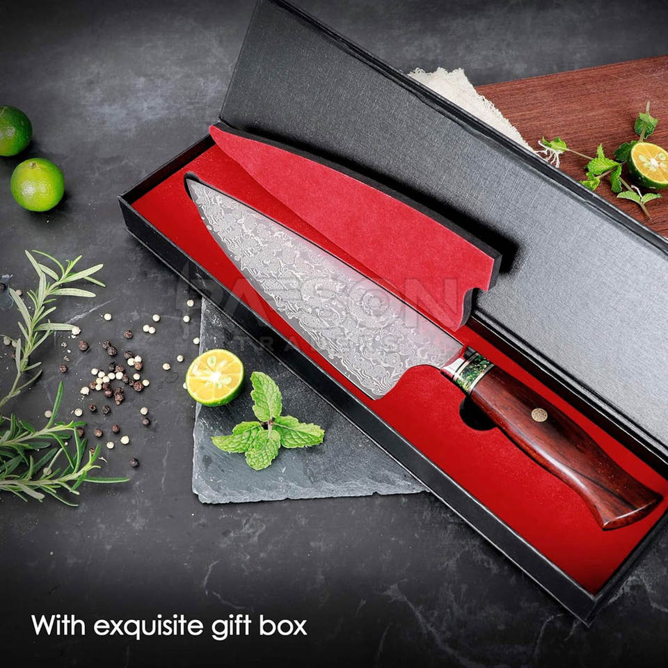 Cuchillo de chef profesional de 8 pulgadas, cuchillo de chef de cocina de madera Pakka ultra afilado de acero inoxidable de alto carbono alemán