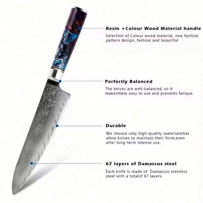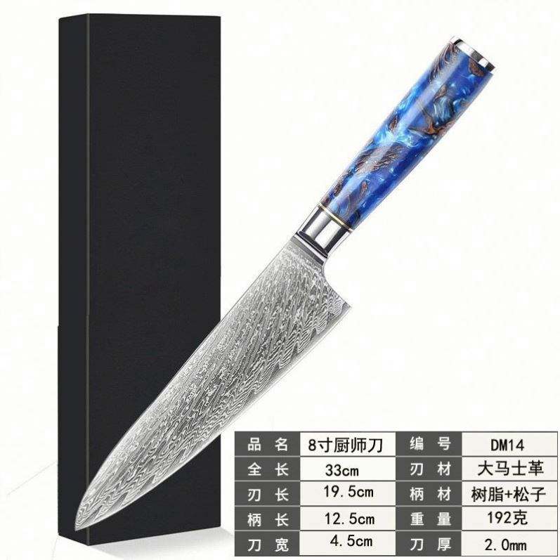 Nombre del Producto:Cuchillo de Chef de Acero Damasco de 8 Pulgadas