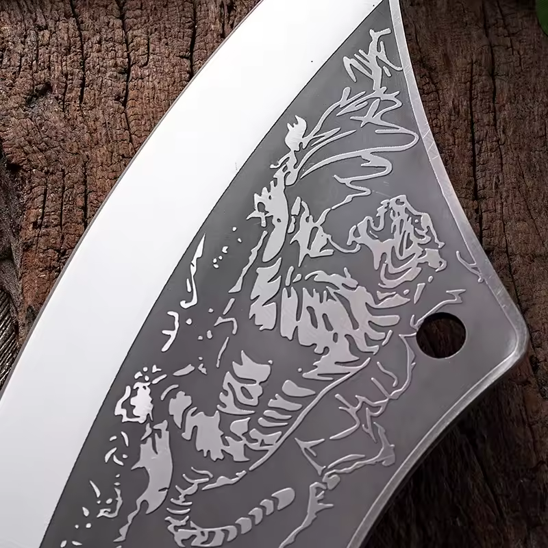 Cuchillo profesional para cortar huesos con patrón de tigre de 8 pulgadas, cuchillo de carnicero de Chef de acero inoxidable afilado con mango Pakkawood
