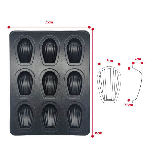 Molde Profesional para Pastel de 9 Cavidades, 2 cm de Profundidad, Antiadherente, de Acero al Carbono, Apto para Horno, para Hacer Madeleines Grandes y Gruesos