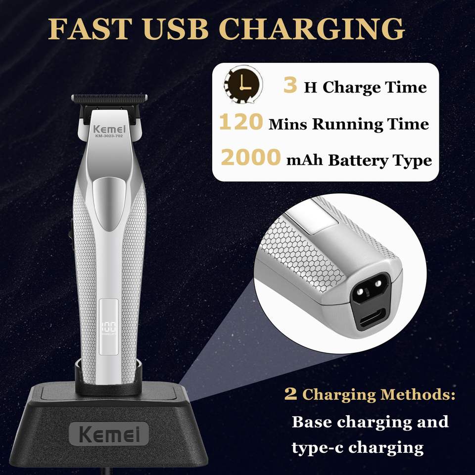 Recortadora Profesional de Pelo y Barba para Hombre, 9000 RPM, Cuchillas en Perfecto Ajuste, Cuerpo Metálico, con LED y Batería