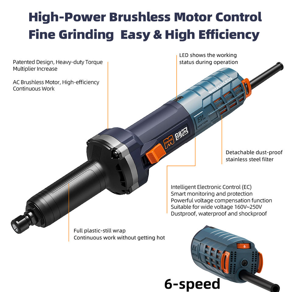 Mini amoladora micro cilíndrica eléctrica sin escobillas de CA profesional, amoladora angular de Metal de grado Industrial, voltaje nominal de 220V