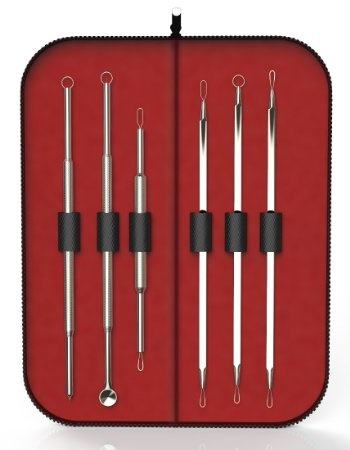 Juego Profesional de 5 Herramientas para Eliminar el Acné o las Espinillas, Hecho con Acero Inoxidable, Limpiador de Poros y Eliminador de Puntos Negros de LCI.