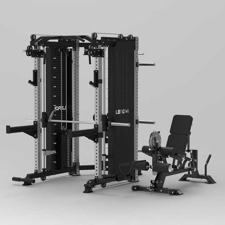 Máquina Smith Comercial Profesional Multifuncional Todo en Uno con Postes de Acero de 75x75mm y Doble Torre de Pesas de 198kg