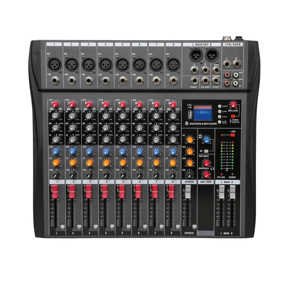 Mezclador de Audio Profesional de 8 Canales, 8 Entradas de Micrófono, Ecualizador Británico de 3 Bandas, USB, Bluetooth, Efecto de Retardo UC-8