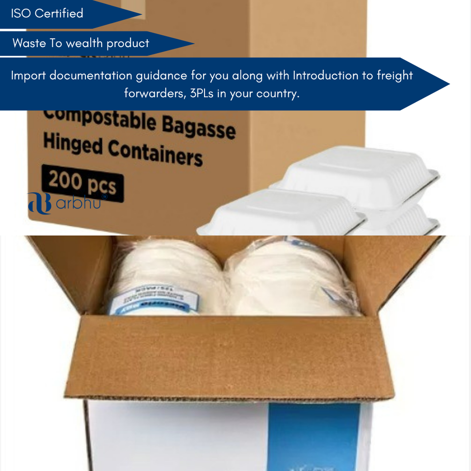Caja de Fibra de Caña de Azúcar Biodegradable y Compostable, Contenedor Desechable para Alimentos para Llevar, Suministro al por Mayor