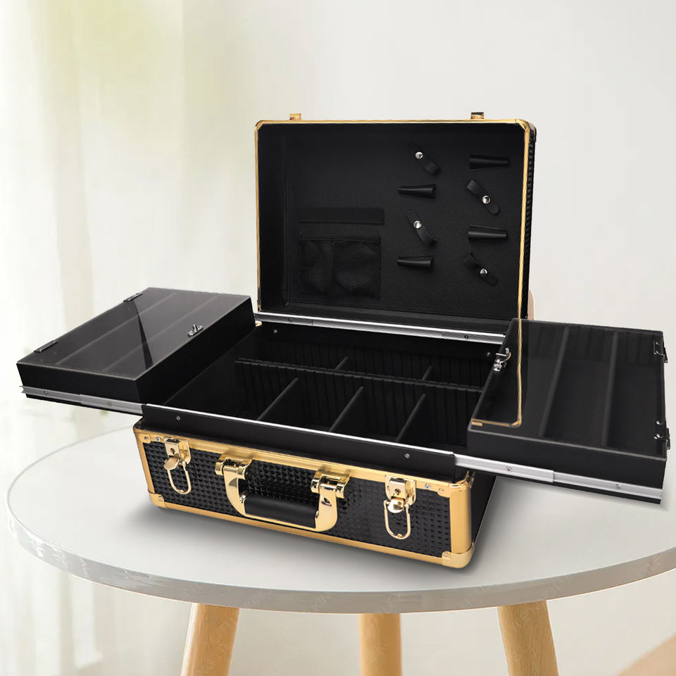 Maletín profesional para barbero multifuncional, caja de herramientas rígida de aluminio con cerradura con llave para viajes