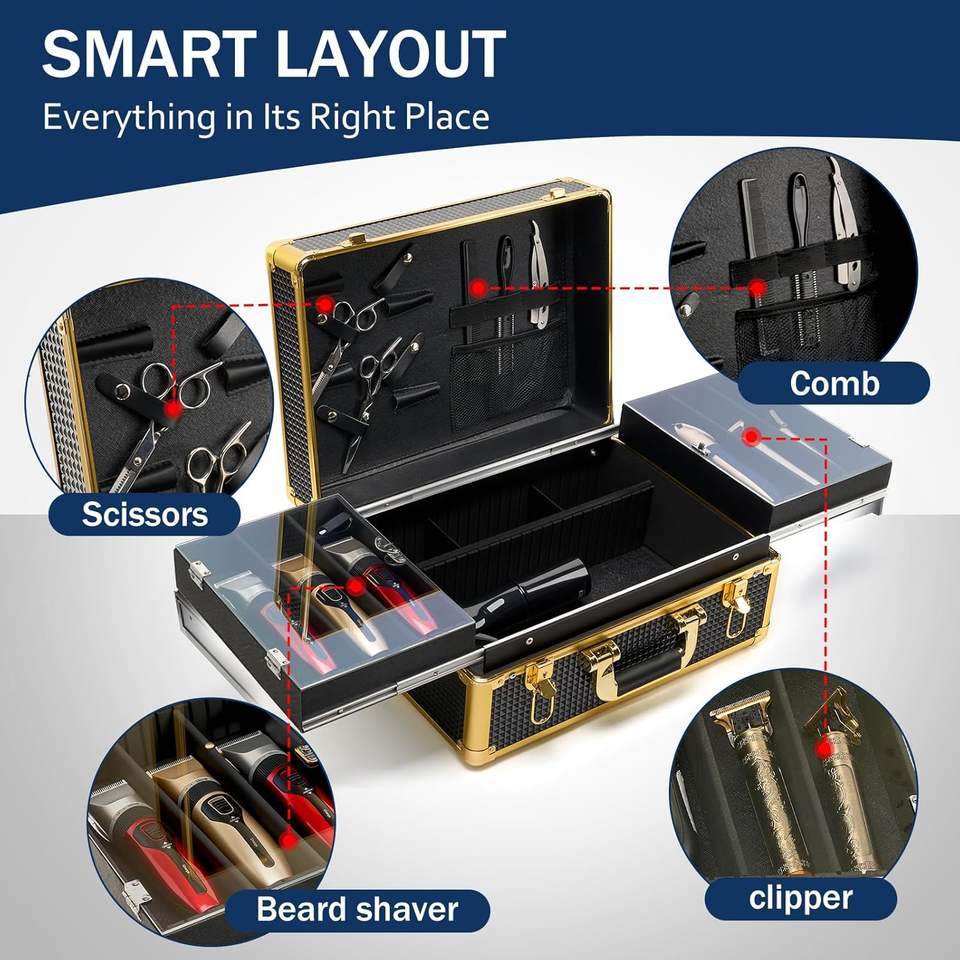 Maletín Profesional para Peluquería, Maleta de Almacenamiento Grande para Salón, Caja de Herramientas para Estilista con Compartimentos, No Incluye Herramientas