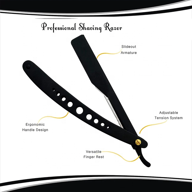 Maquinilla de afeitar profesional de peluquero, mango elegante de acero inoxidable, maquinilla de afeitar de peluquero de borde recto plegable, maquinillas de afeitar manuales de Color negro