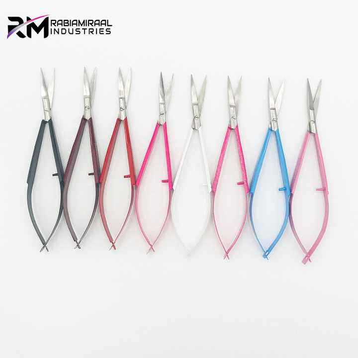 RMI Professional Beauty Sharp All Colors Tijeras de resorte con recubrimiento en polvo Tijeras de cejas de resorte recto con etiqueta privada