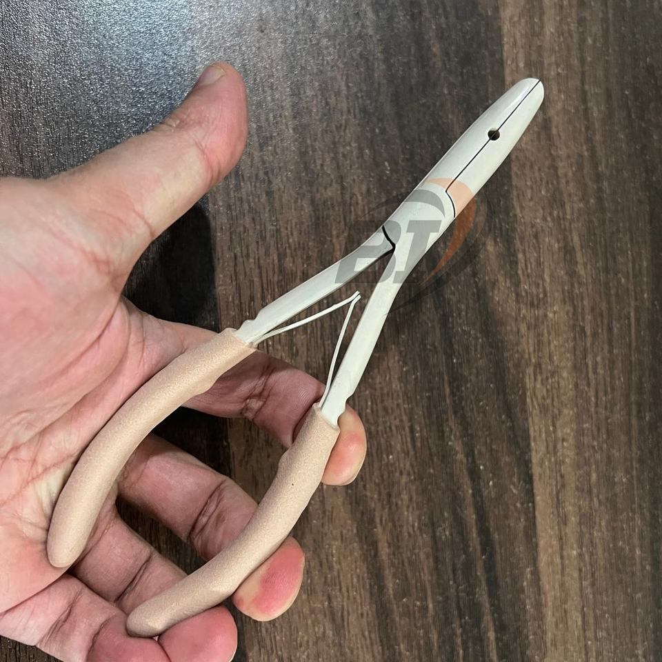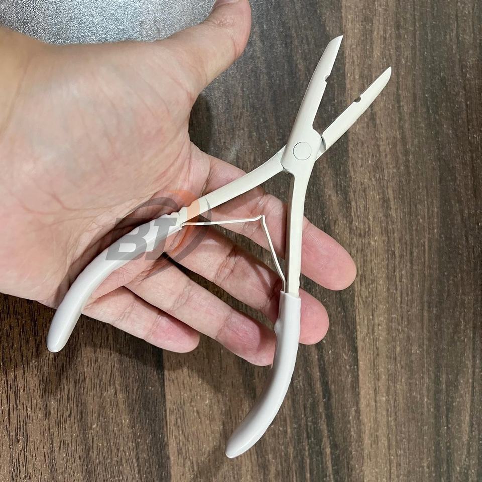 Pinzas Profesionales para Extensiones de Cabello de Acero Inoxidable con Recubrimiento en Polvo Beige, 1 Orificio, Mango de Agarre para Extensiones de Cabello Humano, Orificio de 3 mm
