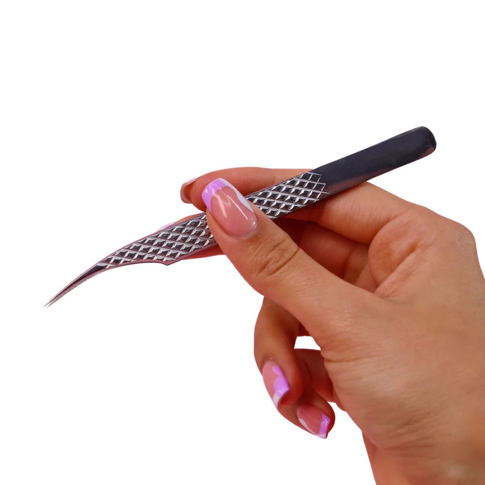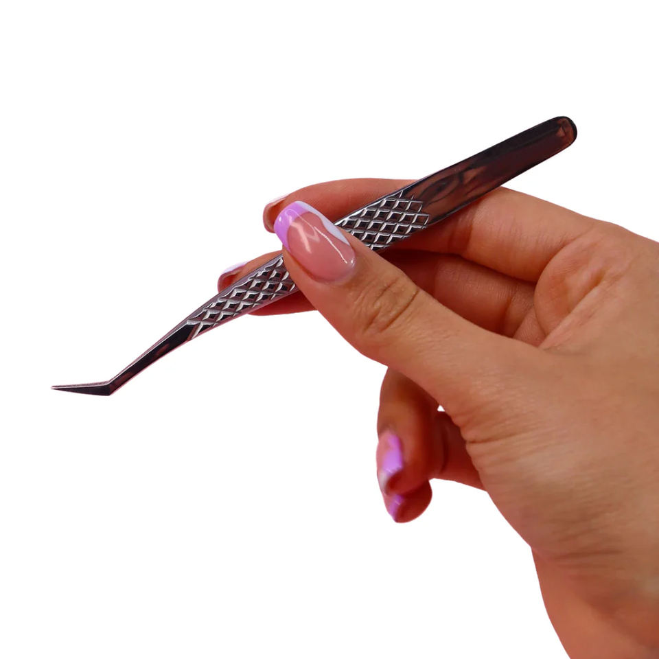 Las mejores pinzas profesionales de volumen de arranque en ángulo, punta de fibra de acero inoxidable, características de precisión para pestañas de ventilador y extensión de pestañas